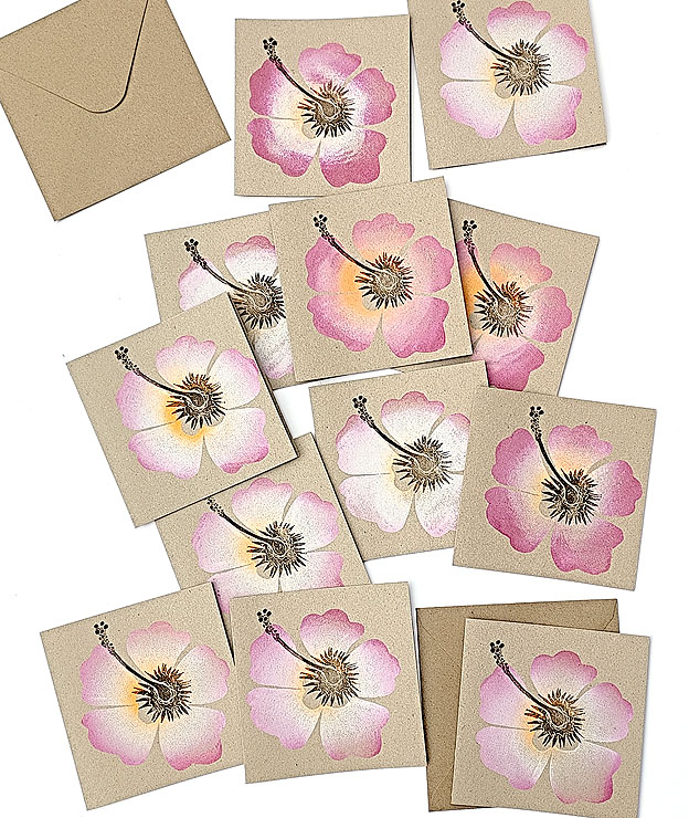 mehrfarbiger Handstempeldruck auf Kraftkarton,