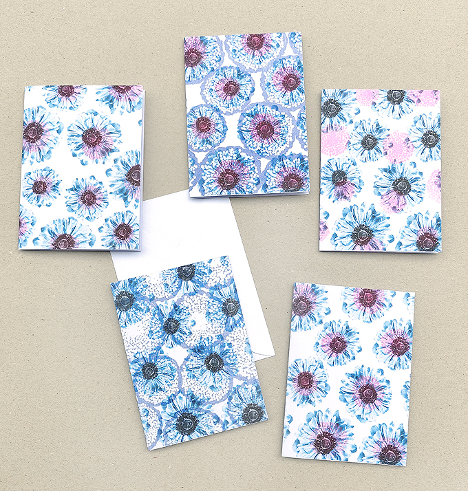 Risodrucke, 3farbig auf weissem Karton, unterschiedliche Kombinationen